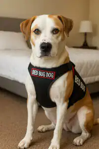 Don’t let her floppy ears and goofy grin fool you — Daisy is no amateur. She’s undergone intensive training and is now a fully certified bed bug dog, capable of detecting bed bugs with over 90% accuracy using her powerful sense of smell. Her certification ensures she’s not just a cuddly companion but a crucial part of the pest control process, saving clients time, money, and peace of mind.
